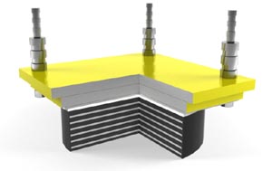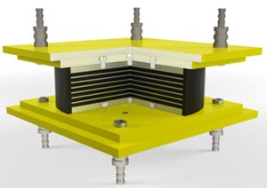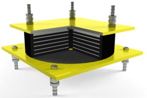 HDR高阻尼隔震橡膠支座按功能形式分為固定型隔震支座和滑動(dòng)型隔震支座,固定型支座位移通過橡膠 剪切變形來實(shí)現(xiàn),橡膠的水平剪切能承受較大的水平力,按其連接結(jié)構(gòu)又分為Ⅰ型、Ⅱ型兩種類型。